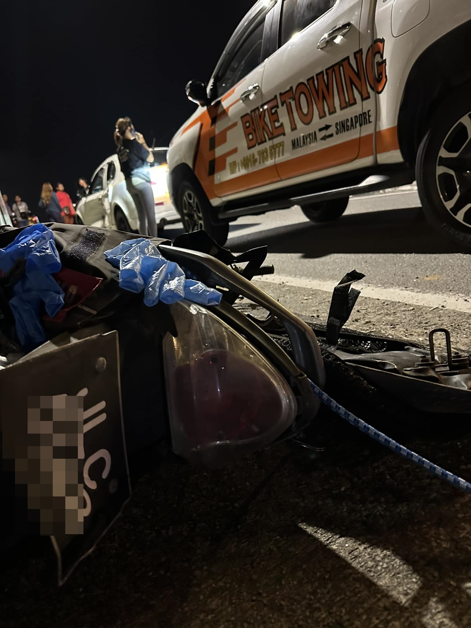 与轿车相撞的野马哈摩哆则从新山方向驶来,骑士是41岁华裔男子,疑闯红灯而肇祸。