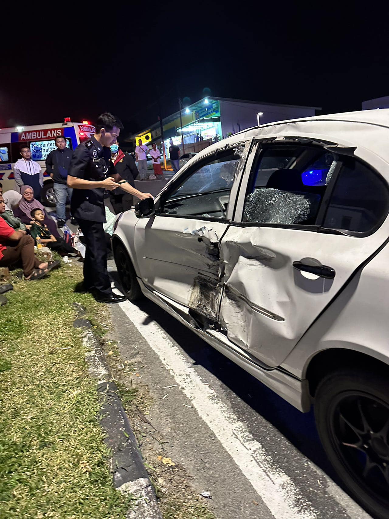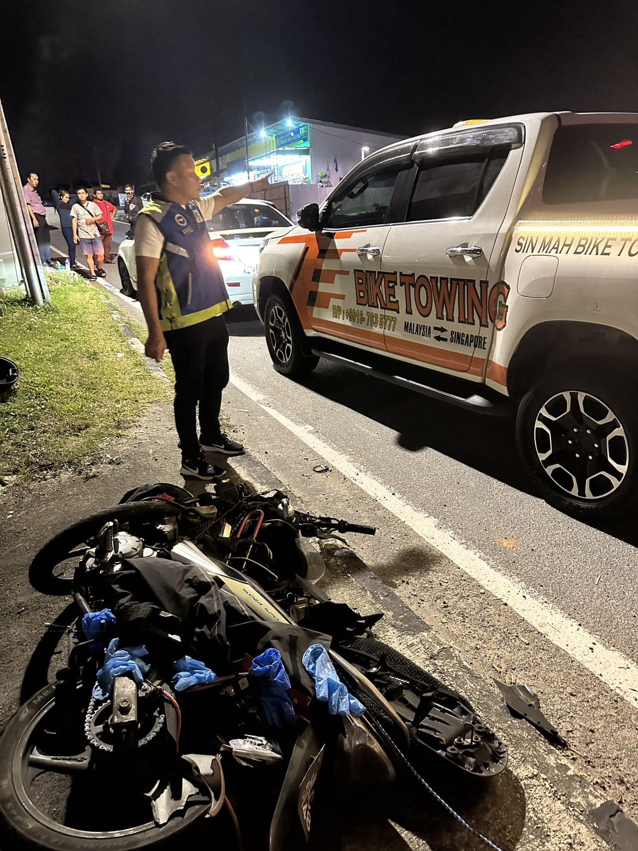 新山南警区主任拉勿指出,警方于凌晨2时40分接获投报,抵现场调查后,一辆白色国产Persona轿车从哥打丁宜往新山方向行驶时,准备右转与摩哆撞上。