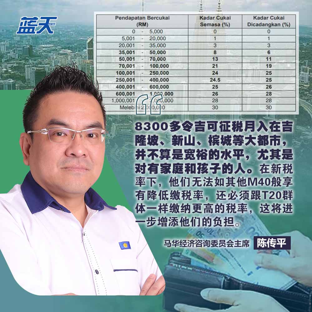 他认为,在财案的新税率下,他们不仅无法如其他M40群体般享有降低缴税率的福利,还被视为高收入群体,而必须跟T20群体一样缴纳更高的税率,这将进一步增添他们的负担。