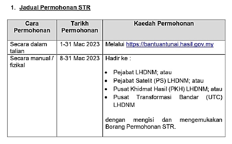 有意申请STR者可浏览官网 https://bantuantunai.hasil.gov.my 的常见问答录(FAQ),获取更多详情。