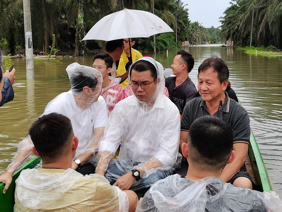 他今天在希盟前岭嘉村长林英杰的协助下,涉水坐船挺进岭嘉,经历千辛万苦将物资运输到了灾区,缓解大家的生活困难。