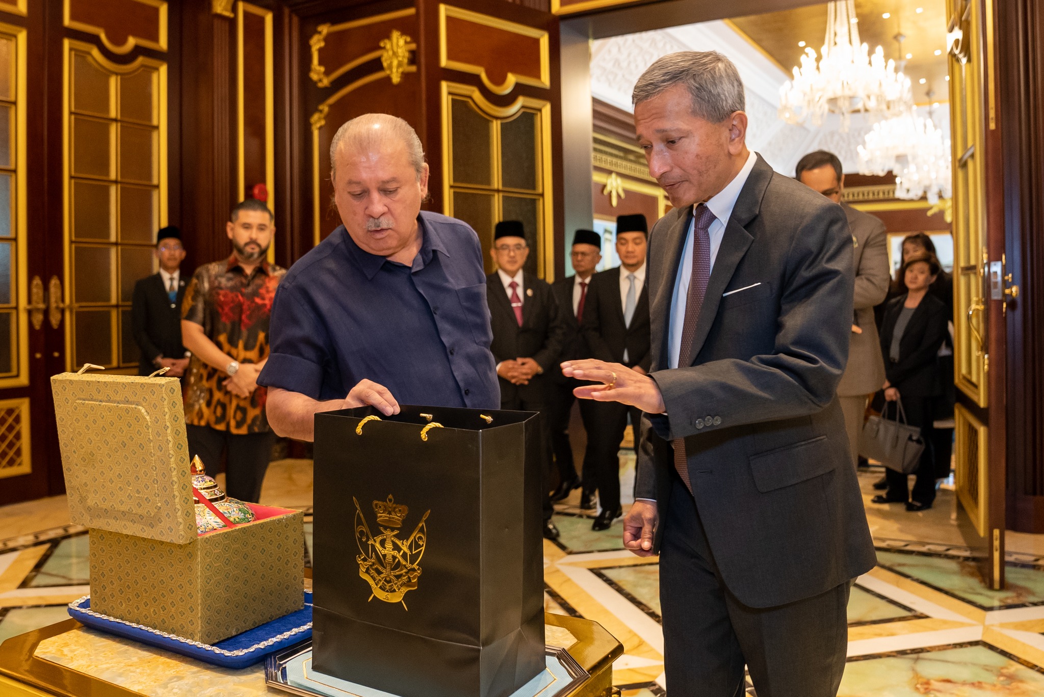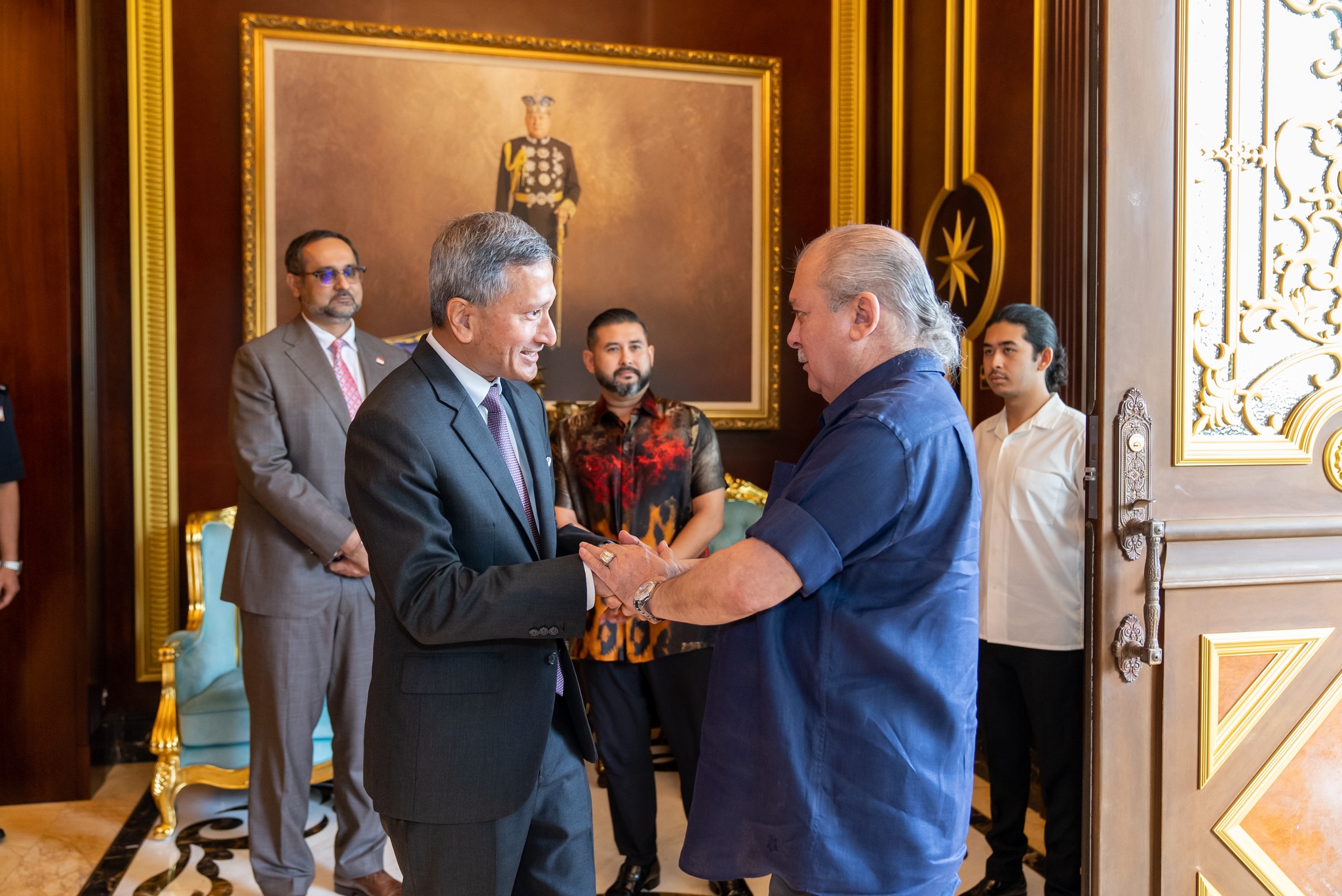 柔佛苏丹依布拉欣于今日在武吉仕林王宫,接见新加坡外交部长维文,柔佛王储东姑依斯迈、柔佛州务大臣拿督翁哈菲兹、柔州秘书丹斯里阿兹米皆出席。