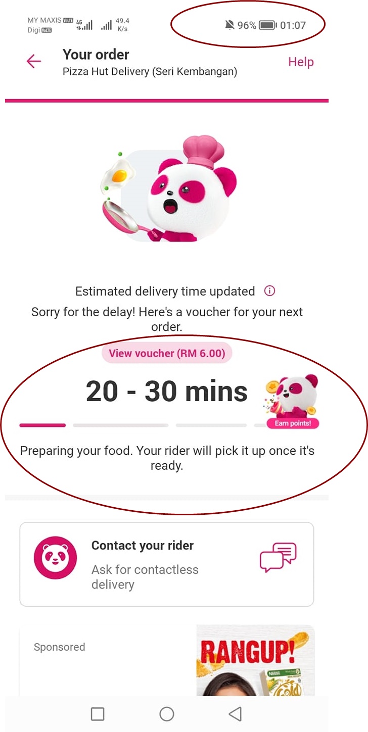 Mervyn指出,他于昨晚9时45分,经牌foodpanda点了Pizza hut,怎知等了30分钟,一直显示正在备餐中,然后去查手机应用程式,却显示餐厅已关门。