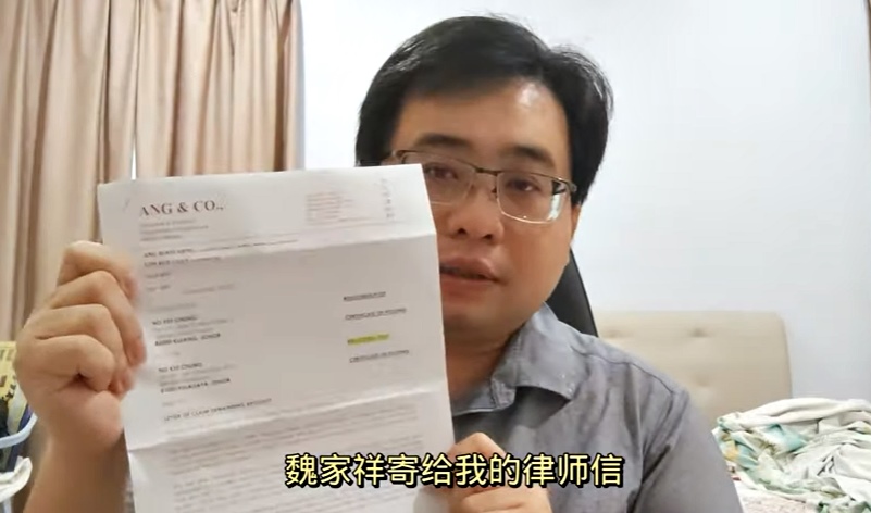 吴启聪在 “阿聪吹水站”平台,常对政治时事进行点评。他于前日(3月15日)收到挂号信,是魏家祥通过洪文兴律师馆,寄来的律师信。
