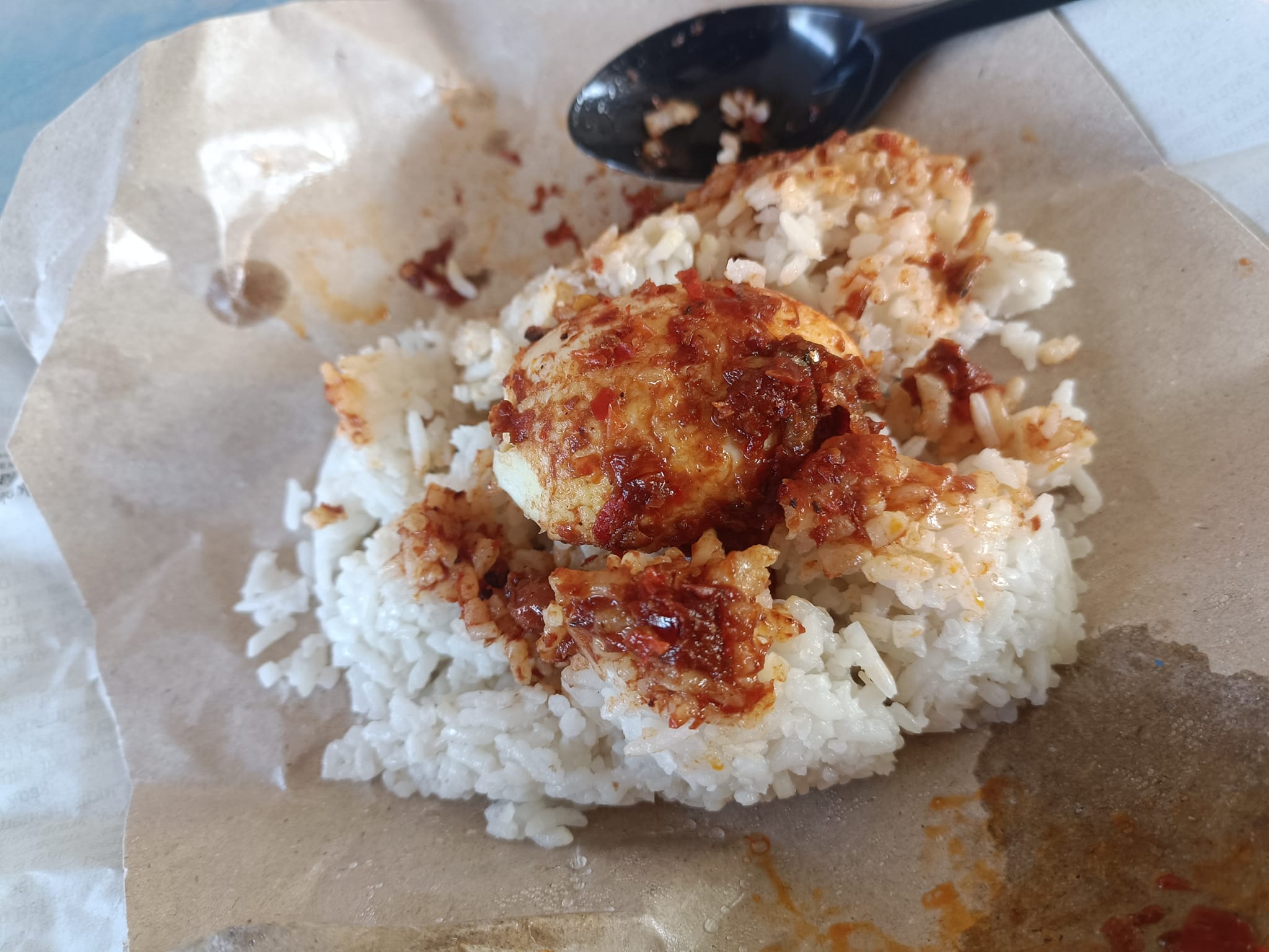 马华新山市议员陈珊珊今日便分享,在Maju Jaya甘榜里竟能买到50仙的椰浆饭,内有半粒水煮鸡蛋、花生、江鱼仔和辣椒。
