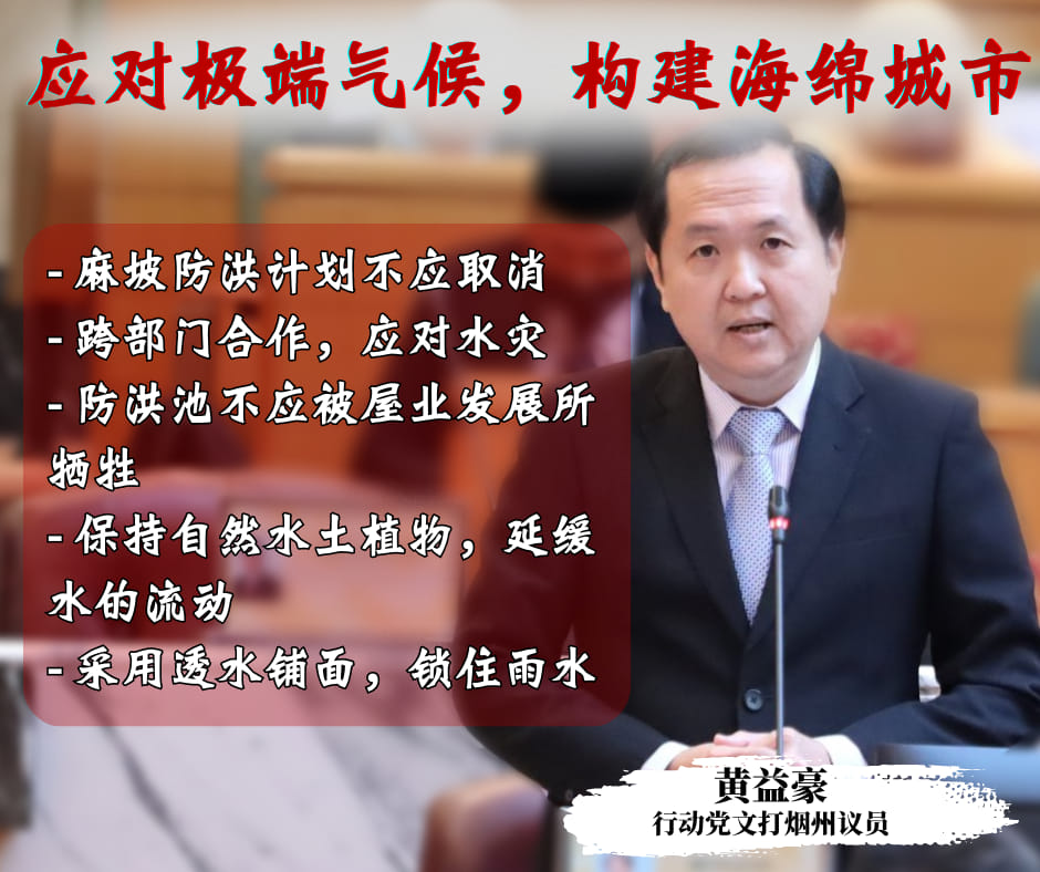 (麻坡23日讯)民主行动党文打烟区州议员黄益豪建议,面对极端气候变化,以致柔佛发生严重水灾,政府必须学会与水共存,努力构建海绵城市。
