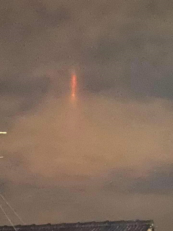 光柱垂直在夜空悬浮,有些闪烁,不少民众都注意到这奇怪的一幕。
