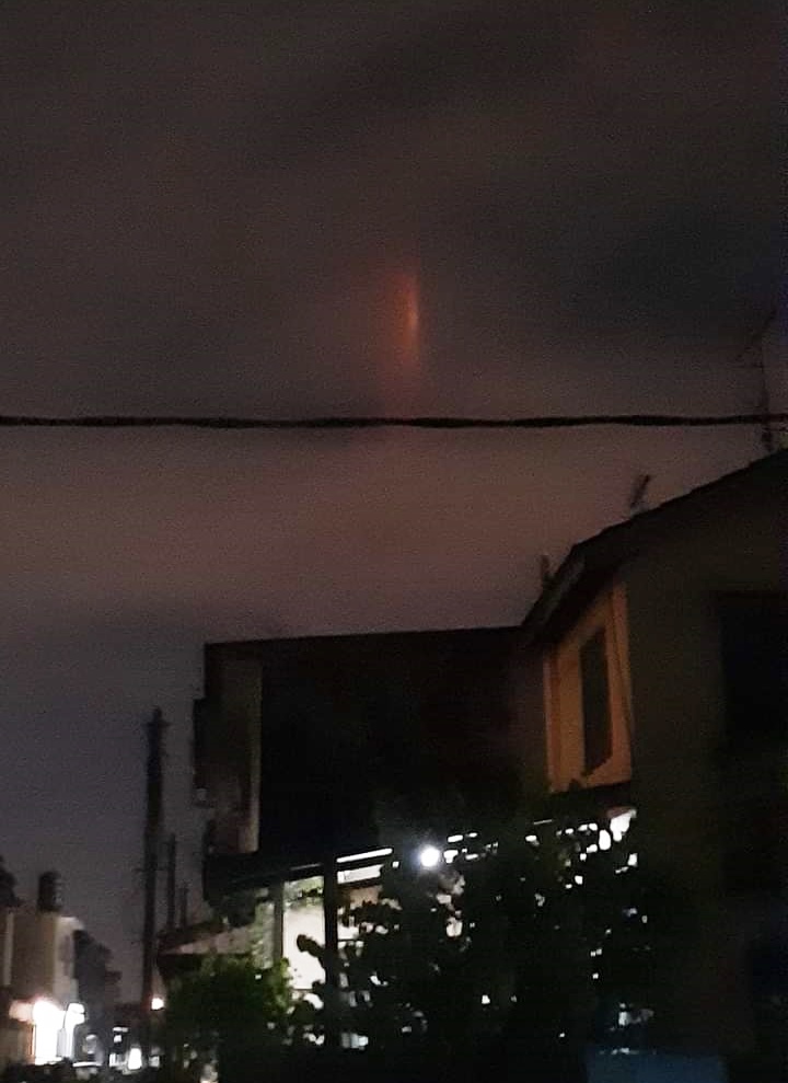 昨晚约10时,在新山多个地区如班兰、实达英达(Setia Indah)、实达热带山庄(Setia Tropika)、福林园一带都看见奇怪的火红光柱。