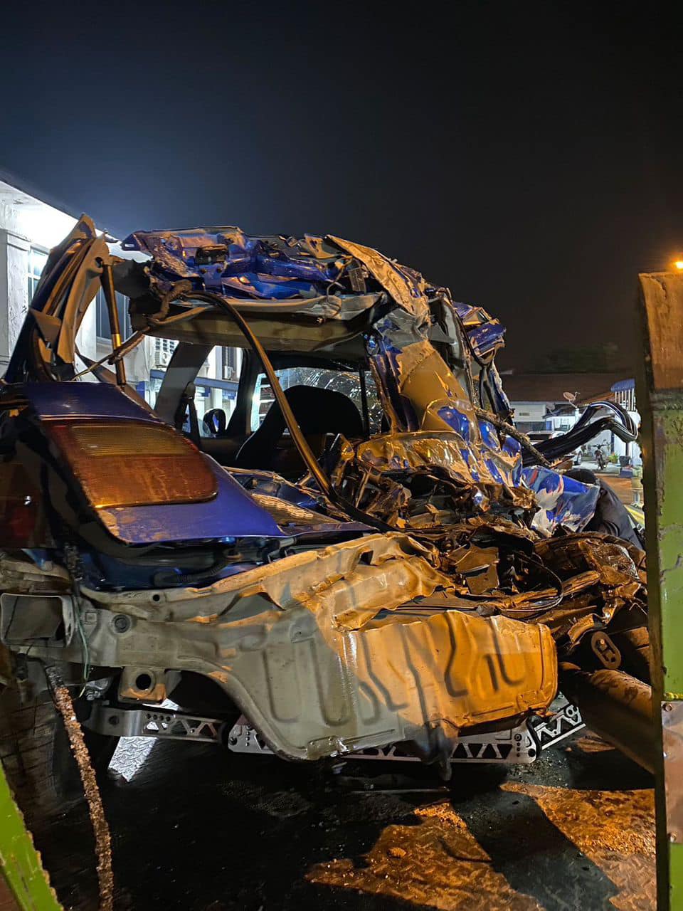 (峇株巴辖10日讯)3名好友共乘一辆时,不知何故失控撞向汽车修车中心前,停泊的4辆轿车,造成车内2名华裔青年断魂,另一青年受伤。