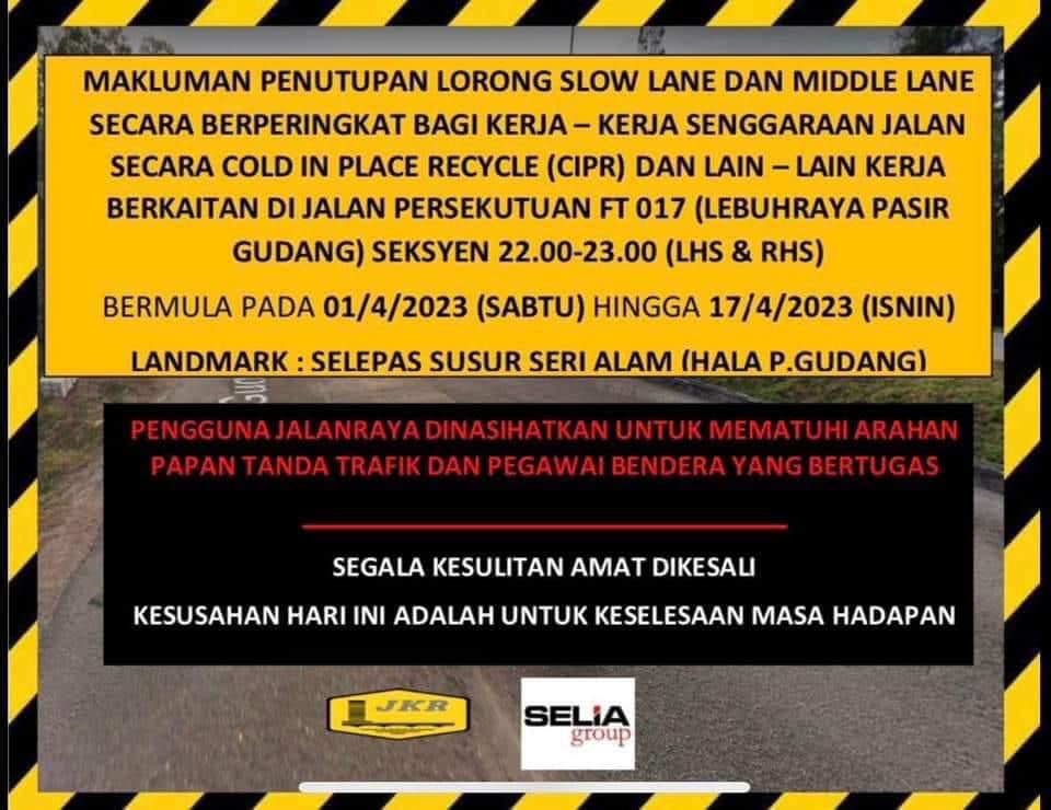 巴西古当大道修路将到4月17日,主要路段在至达城路一带,公共工程局早前已通告施工期间会封闭一至两车道,提醒民 众使用替代路段。
