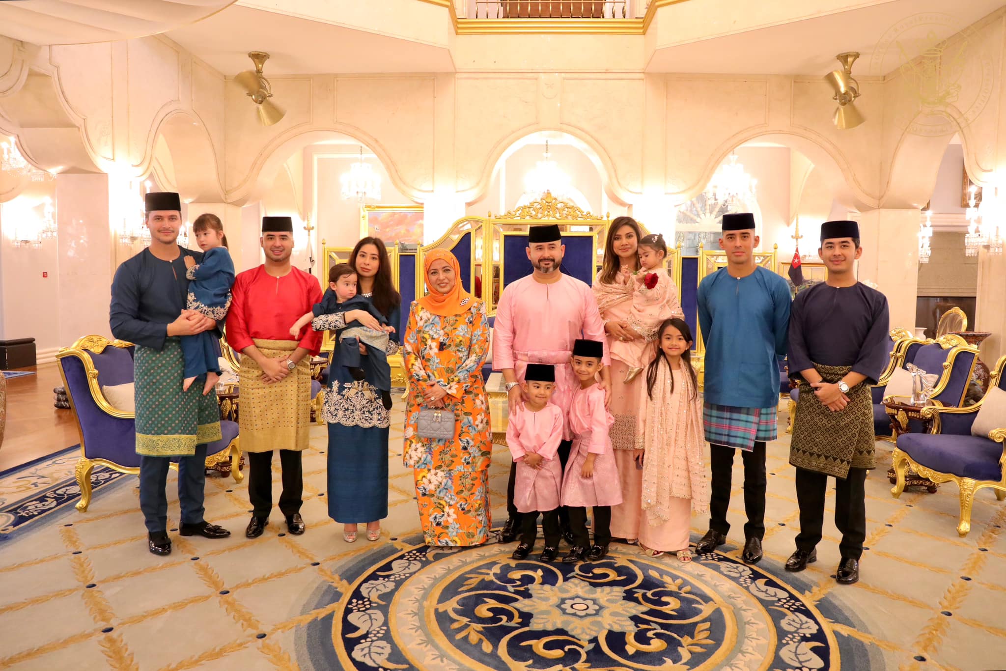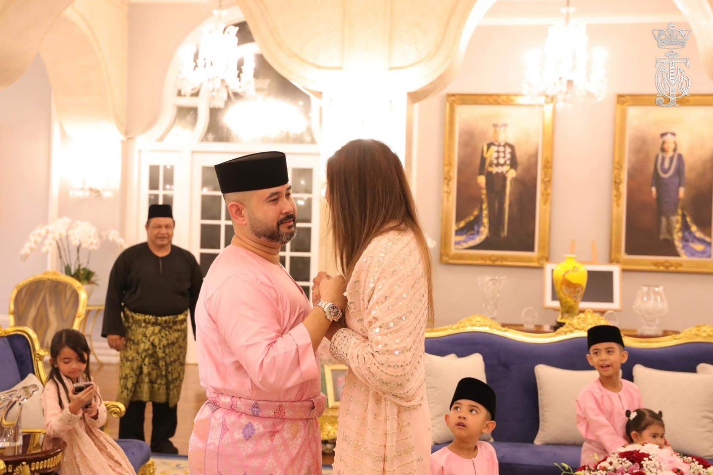 柔佛王储东姑依斯迈和王储妃卡丽达携带4名孩子,即长女东姑卡宋阿米娜苏菲雅、副王东姑依斯干达阿都嘉里尔,王子东姑阿布峇卡依布拉欣、幼女东姑查拉查丽阿芝雅,皆以粉红系新衣亮相过节。