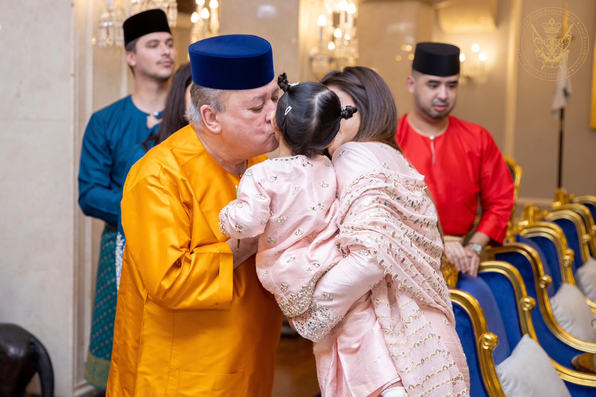 昨日生日的东姑查拉查丽阿芝雅也获得陛下的吻。王后有四名可爱的皇孙在身边转,也是笑得合不拢嘴。
