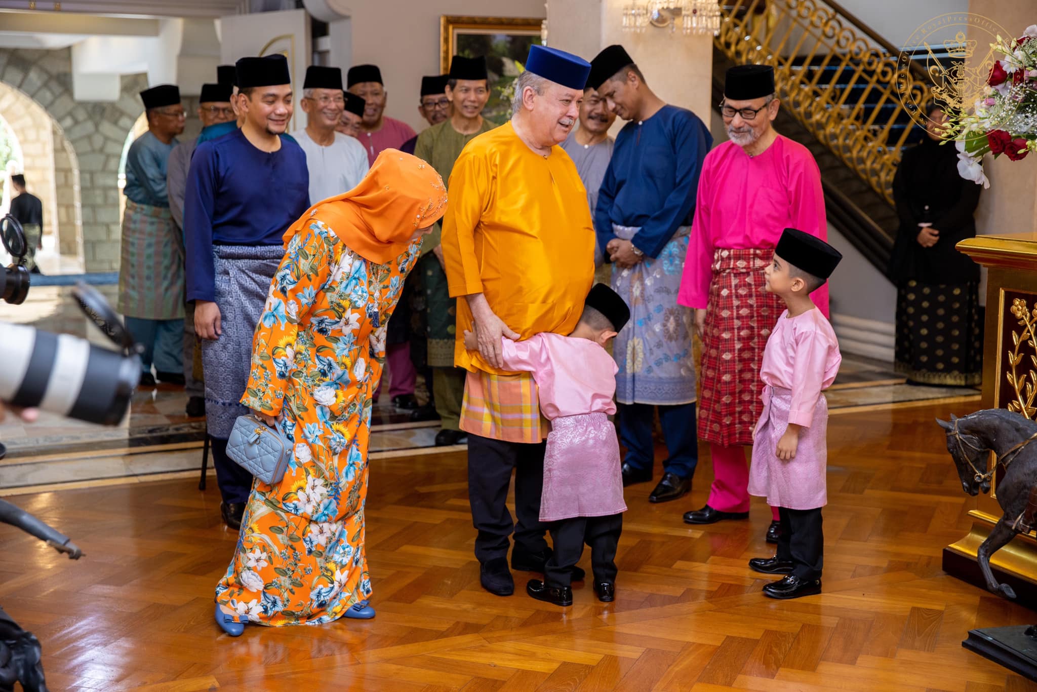 (新山22日讯) 柔佛王储一家六口“粉红”迎开斋节,王室一家同庆佳节,柔佛苏丹和王后被皇孙们逗得笑呵呵。