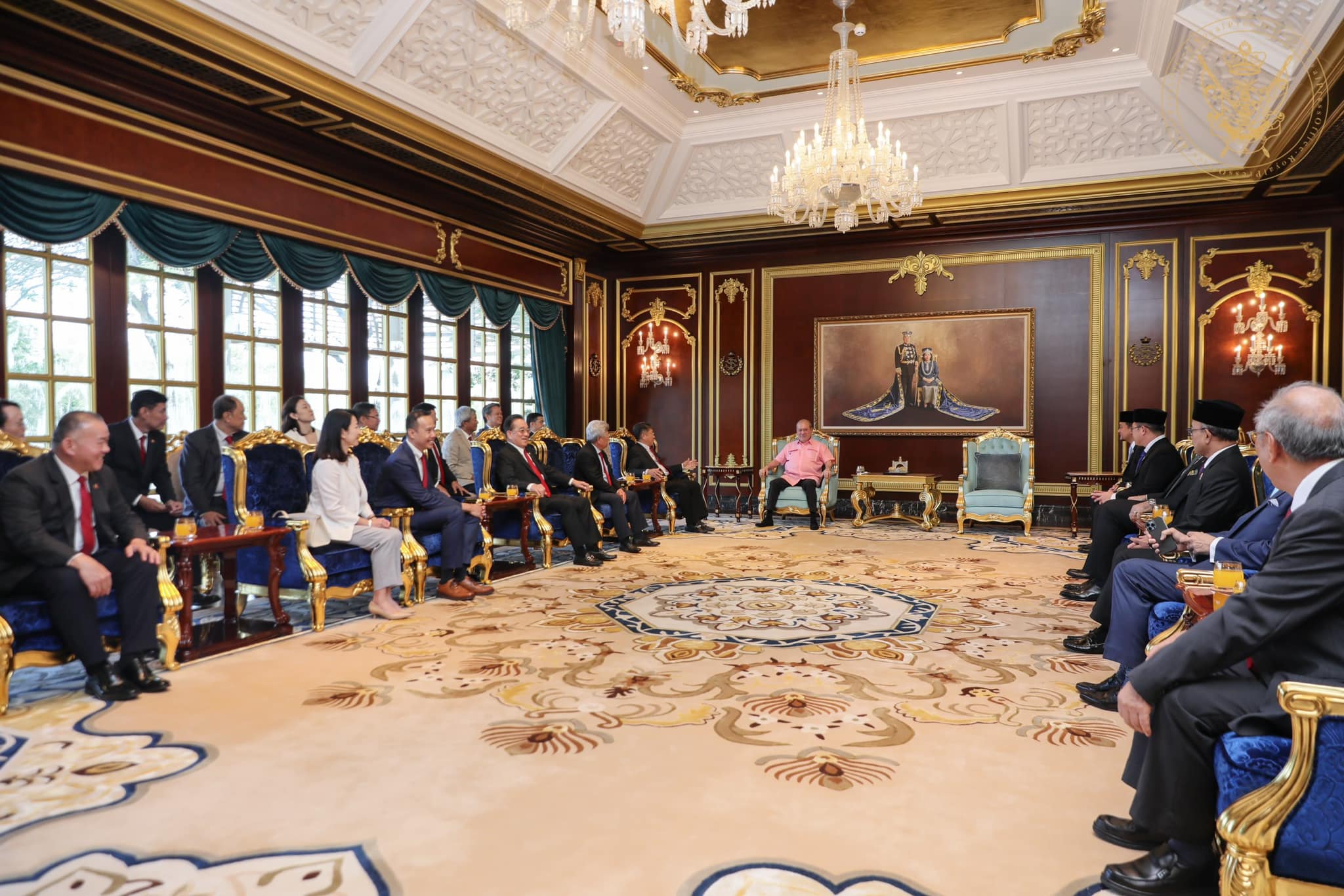 新加坡中华总商会(SCCCI)在会长高泉庆率领下,今日觐见柔佛苏丹。该商会S是是新加坡最大的商业组织,拥有约5000名企业会员,来自各行各业 4万多家公司。