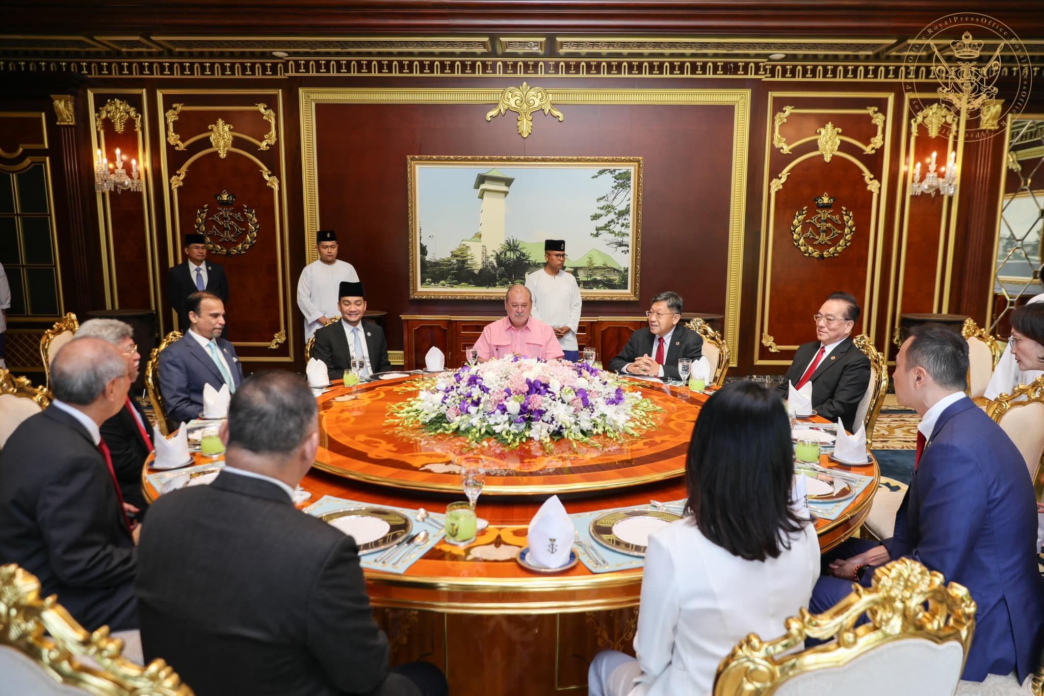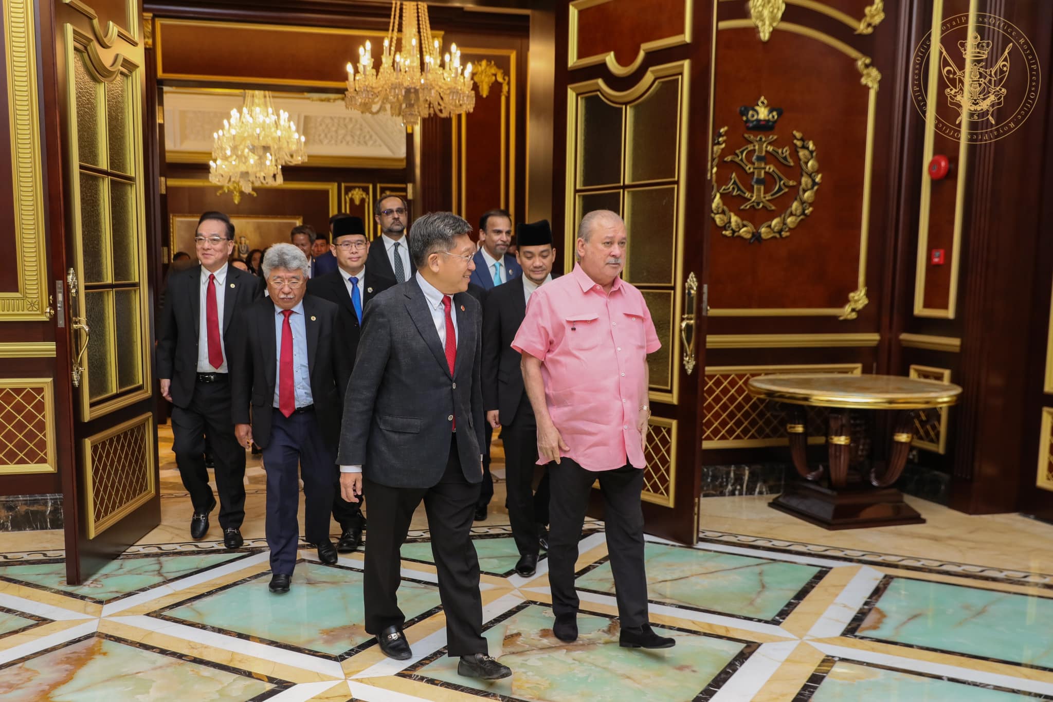 (新山26日讯)极具代表性的新加坡中华总商会(SCCCI)一行人,今日入宫觐见柔佛苏丹依布打欣。新加坡至今仍是柔佛最大的投资来源,占州内所有外国直接投资的(FDI)70%。