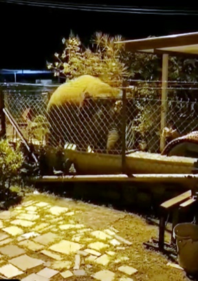更有居民于昨日摄下野众撞破篱笆门而入,之后相信发现屋前没有食物,便又撞向与隔壁相连的篱笆。