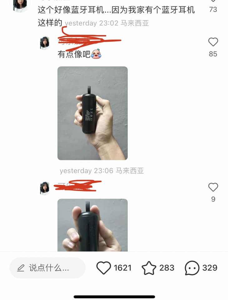 网友Diamondny Kelly今日在面子书,代朋友上载上个月吃火锅的历,直指位于新山五福城一家火锅店,捞出类似电池物品,事后警方看照片怀疑是电子烟,但有网友指出那是蓝牙耳机。