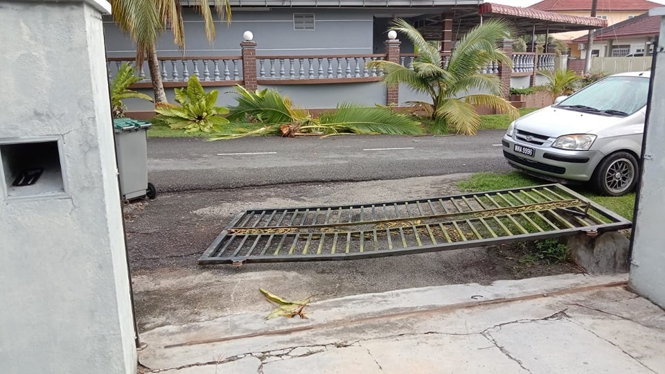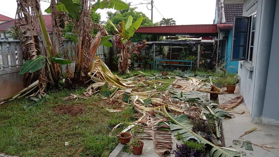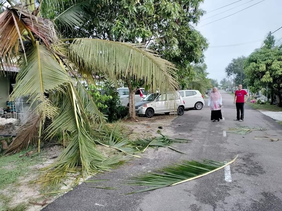 居民Mohd. Ghazali Esa(47岁)说,一家人于凌晨4时,一直听见路边的狗吠声一大早起床每看见四处都是被推倒的树。