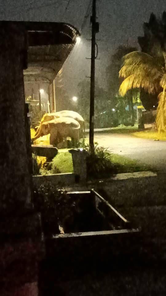继上周在 Semangat 9 路有民宅被野象推倒门而入后,今日凌晨约1时,这对一大一小的野象出现 Cekal路,并且狂欢闹上3小时,发出的叫声吓坏了居民。