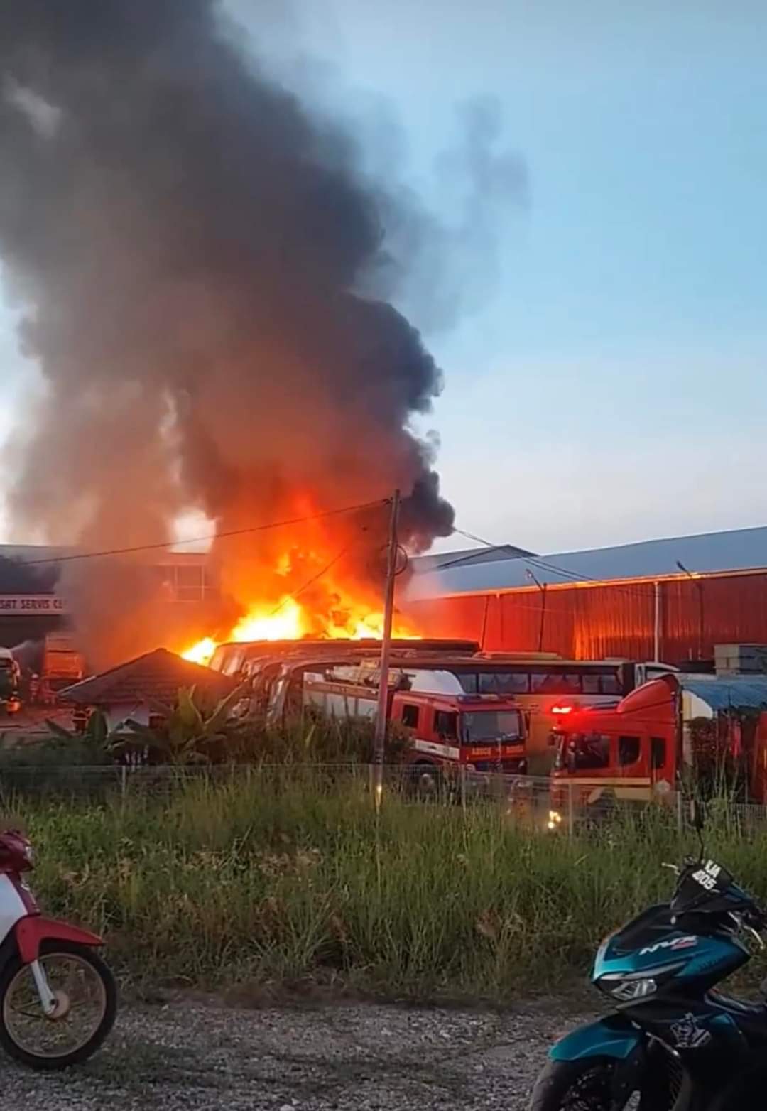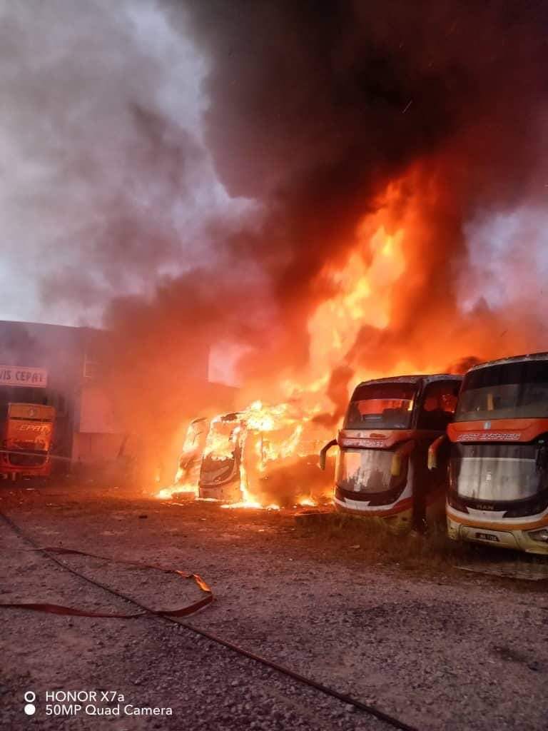 社会时事 昔加末工业区大火 5辆巴士变废铁 2023 年 5 月 13 日 (昔加末13日讯) 维修厂大火,5辆巴士”葬身火海”,火势猛烈骇人。 火患于昨日傍晚在昔加末工业区kejuruteraan1路的一间维修厂发生。 昔加末消拯局助理指挥官Muhd Hazim说,当局是在晚上7时10分接获投报。 8 当局立即出动2辆消防车,还有一辆水槽罗厘,携同16名消拯员前往现场灌救。 他说,有4到5辆巴士90%被烧毁,另有一辆烧毁30%。 火势在2半小时控制,没有涉及人命伤亡。 起火原因和损失有待调查,消拯队于晚上9时41分收队。 由于火势想当大,浓烟冲向云霄,不少民众围观。 分享 Facebook Twitter Pinterest Linkedin