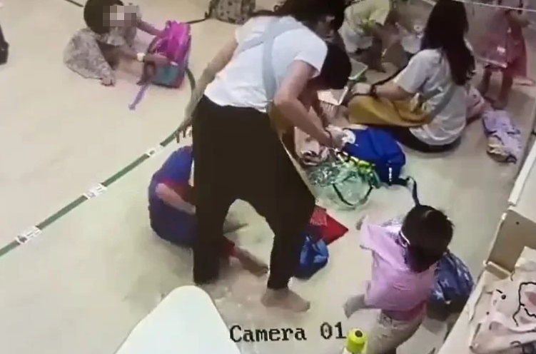 第二天到到托儿所查看闭路电视,发现女老师涉嫌拉起儿子,再重摔到地面数次,甚至拖着儿子在地面上行走。