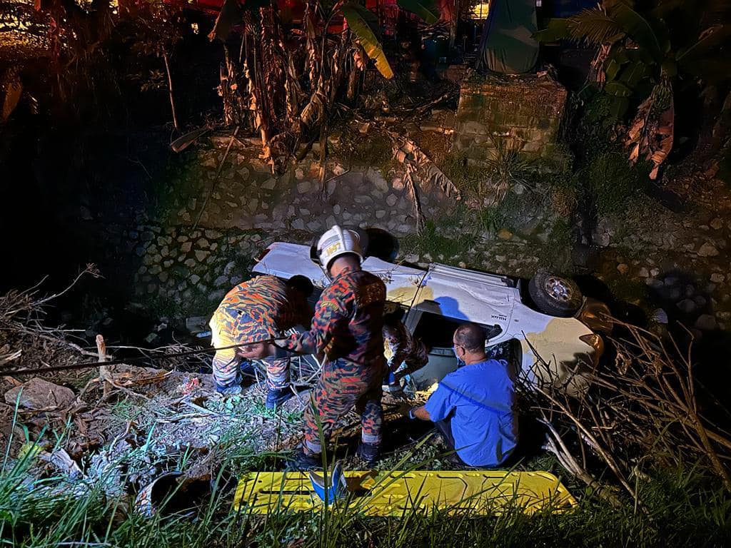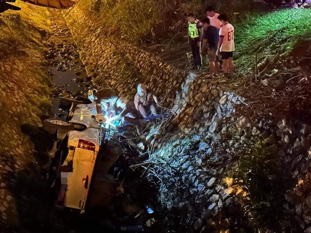 (古来7日讯)一辆货卡凌晨失控掉入5公尺深的沟渠,司机当场毙命。