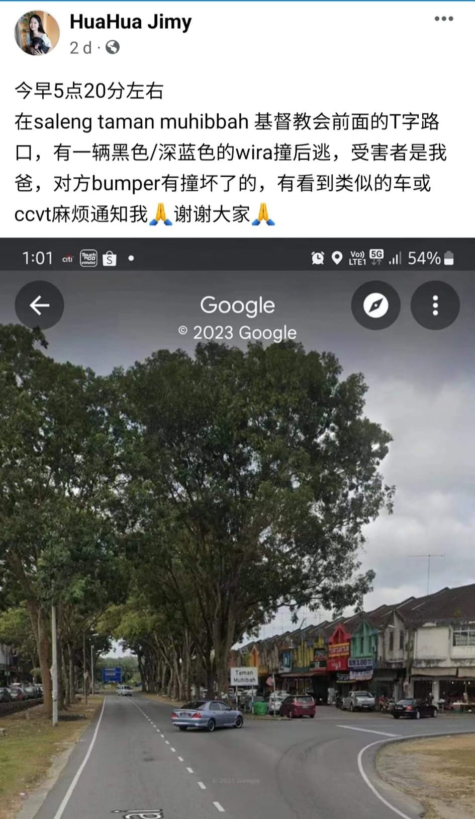 伤者女儿指出,事发地点在基督教会前面的T字路口,相信是一辆深色的wira轿车撞后逃。