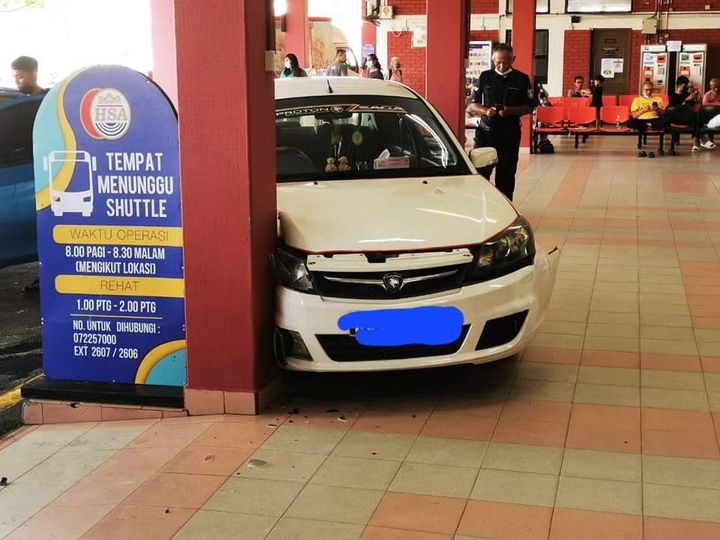 (新山14日讯)阿嫂没有驾驶执照,却开车失控撞新山中央医院大厅前的柱子,而且正是短程接驳巴士载客位置,庆幸没有造成人命伤亡。