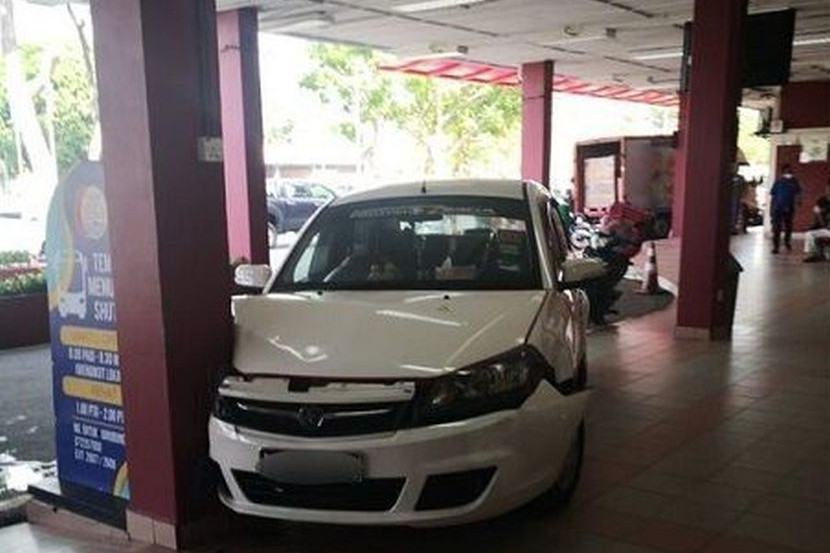 昨日上午10时25分,一名46岁的家庭主妇到医院探访接受治疗的儿子时,不知何故失控,以致所驾驶的Proton Saga,撞向新山央医院主楼前的柱子。