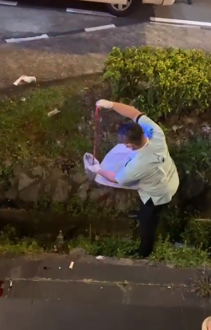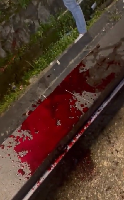 (新山2日讯)青年在餐馆前突然持刀捅自己,以致肠都掉出来至沟渠处,现场留下大滩鲜血,触目惊心。