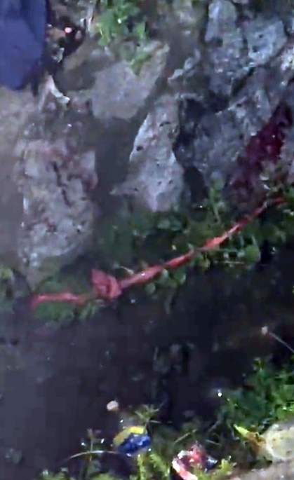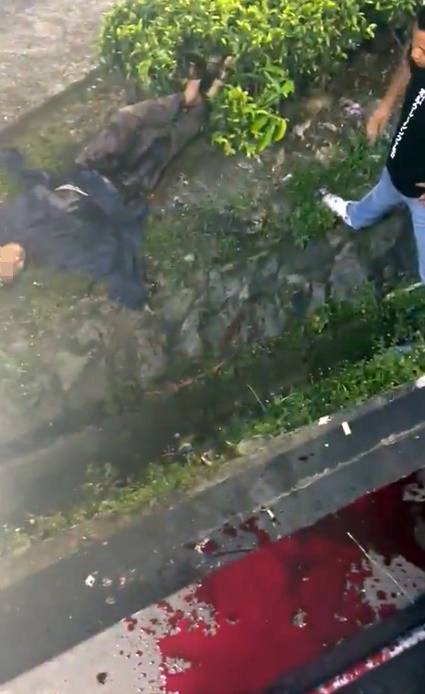 网上流传,男子突然在用餐顾面前,割颈和捅腹部寻死,肚破肠流,躺在沟渠旁奄奄一息。