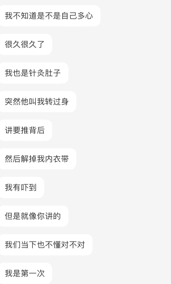 接受完治疗后,她便向朋友同事诉说自己经历,同事查问了也是中医的姐姐,便指她肯定是被非礼了,因为治疗一般上不可能3个小时,而且一定会有护士陪同。