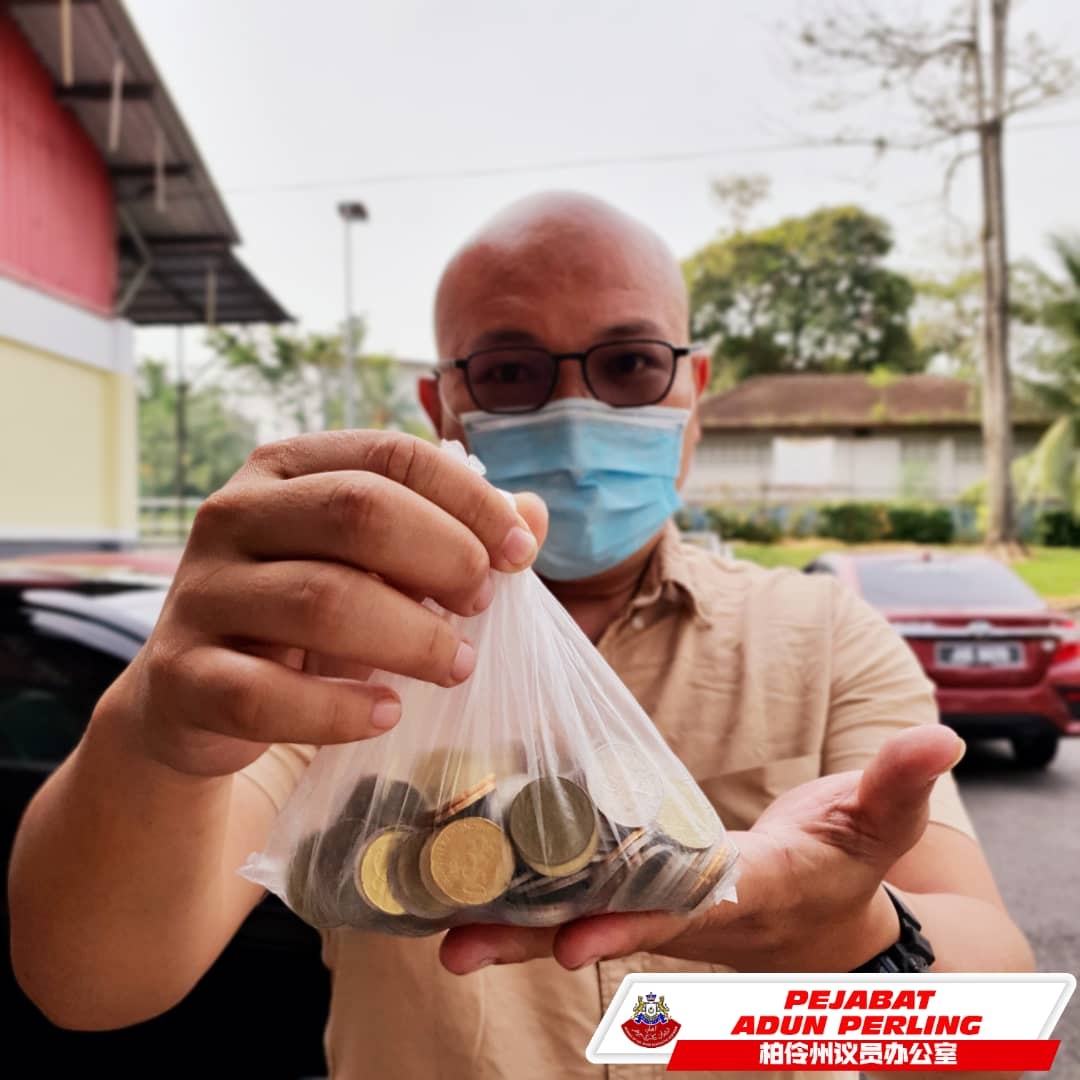 行动党柏伶区州议员邹裕豪今早收到一包价值RM100的硬币,捐款的是年仅13岁的少年。少年原本想用这笔钱买网络游戏里的“装备”,但最终仍捐出来给需要援助的人。