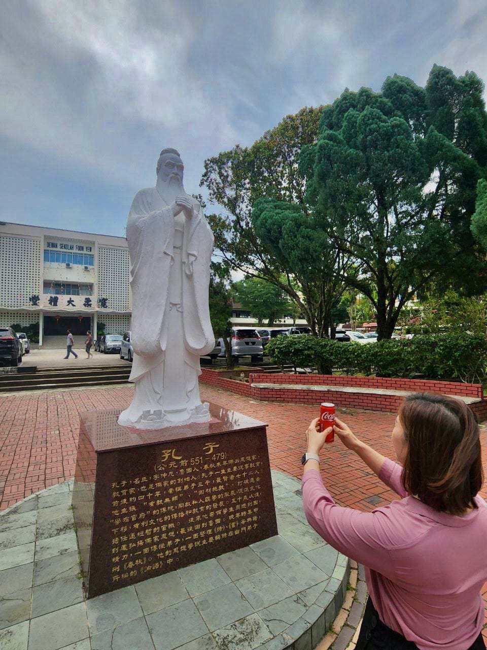 马华依斯干达公主城市议员陈贤绮今日分享有趣贴文,指自己拿着汽水“可口可乐”孝敬至圣先师孔子。