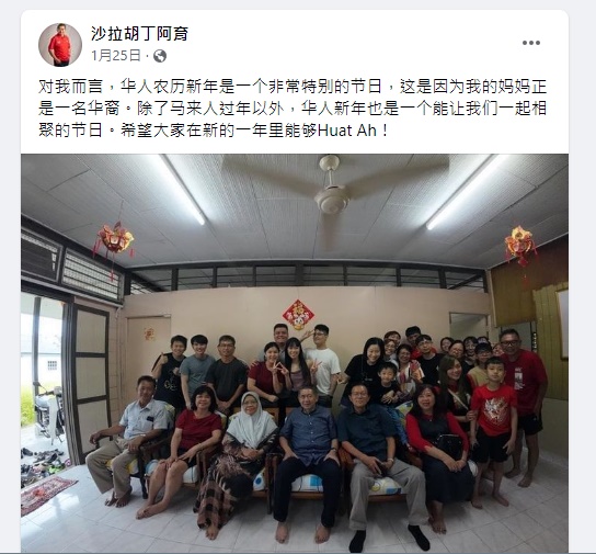 由于沙拉胡丁阿育的母亲华裔,母亲从小被巫裔家庭收养,之后嫁给了是巫裔的父亲,因此沙拉胡丁阿育流着华裔血统,每年华人农历新年也与亲友团聚。