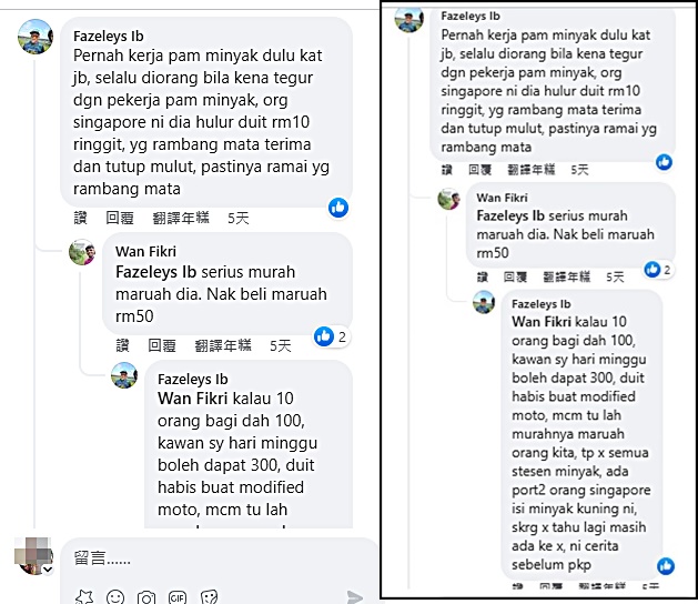 此贴文引起网民议论纷纷。唯网友Fazeleys Ib留言时揭露,曾在新山油站工作,总是因为与同事发生争执而遭排挤。