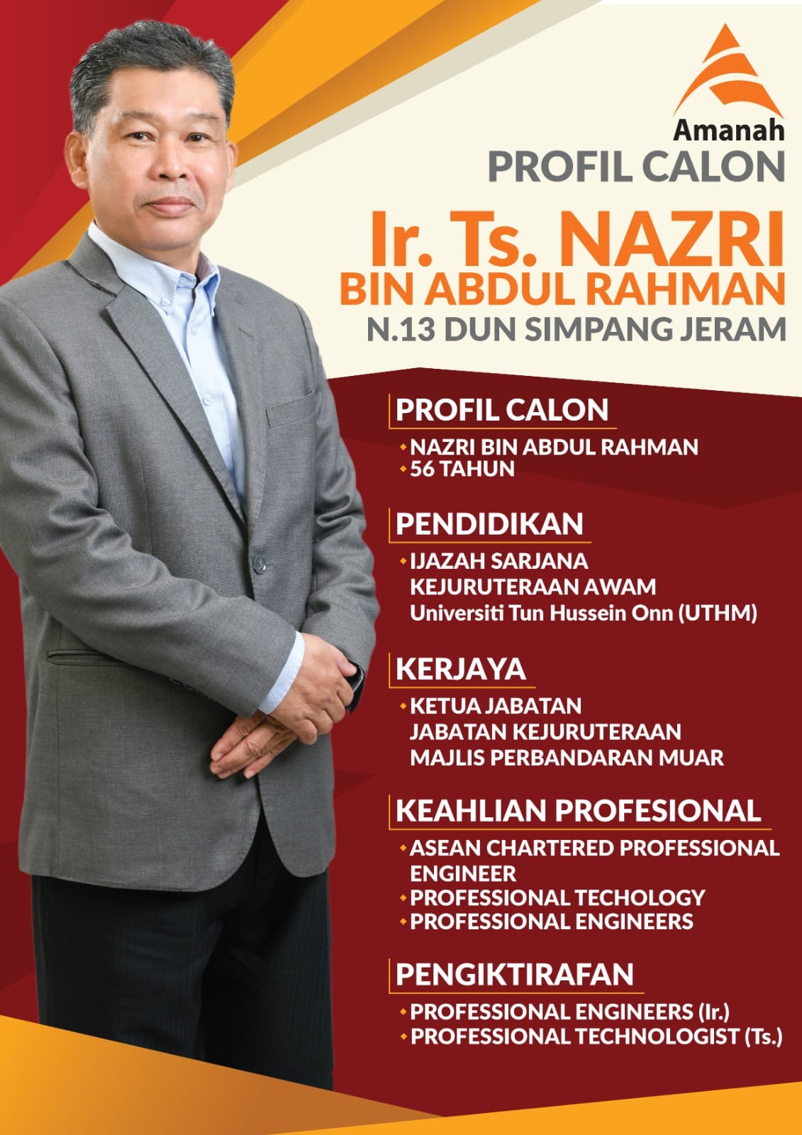 至于新邦二南上阵的是56岁的纳兹里阿都拉曼,他原是麻坡市议会的工程师。