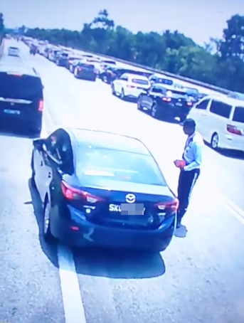 (新山3日讯)过关卡“驶”用巴士通道插队,二三十辆轿车被截停路边等候发落,大快人心。