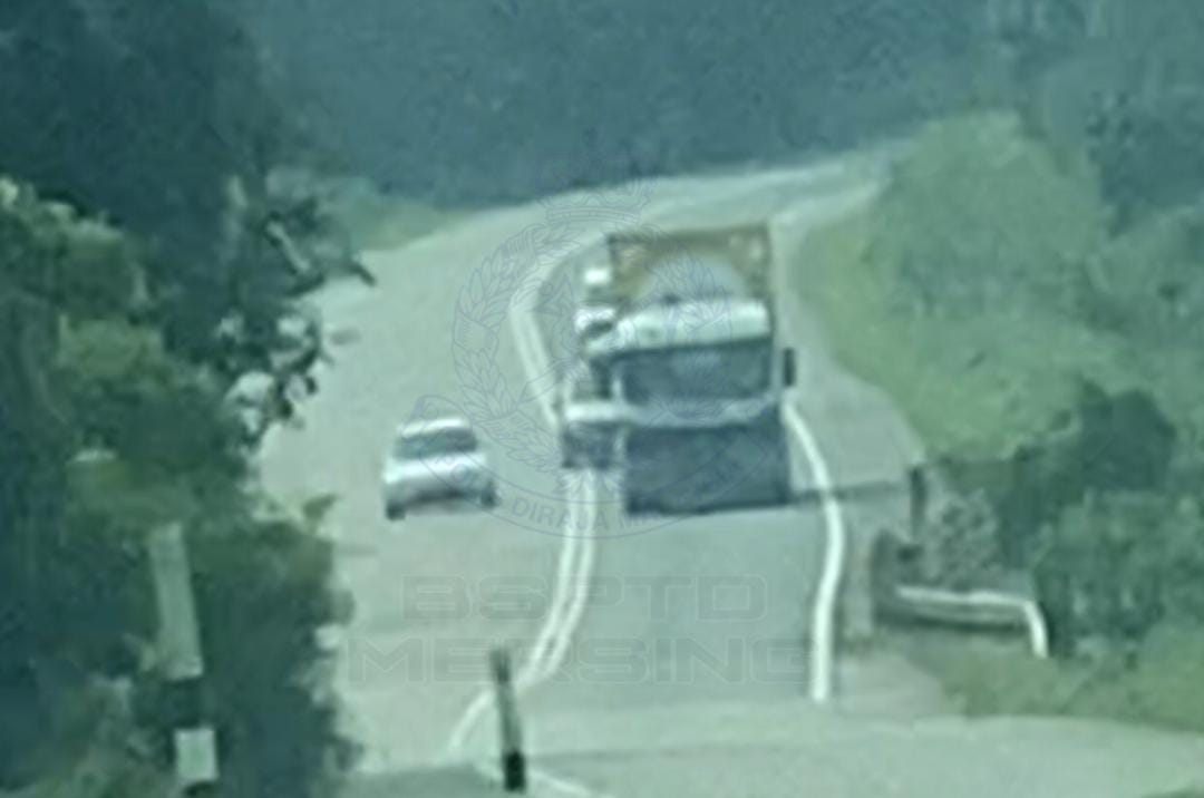 以为双线超车没人看见,司机一举一动全被警方摄下,接着被截停后接受“证书”,证明违例超车行为,罔顾公路使者的安全。