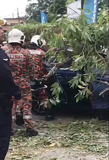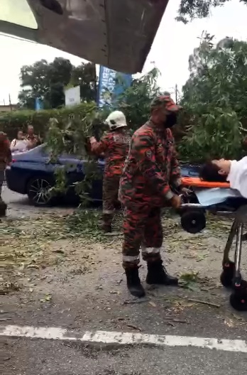 由于今天是柔佛埔莱国席补选,她履行公民责任,离开Desa Rahmat花园的投票后,驾车时却被倒下的大树击中。