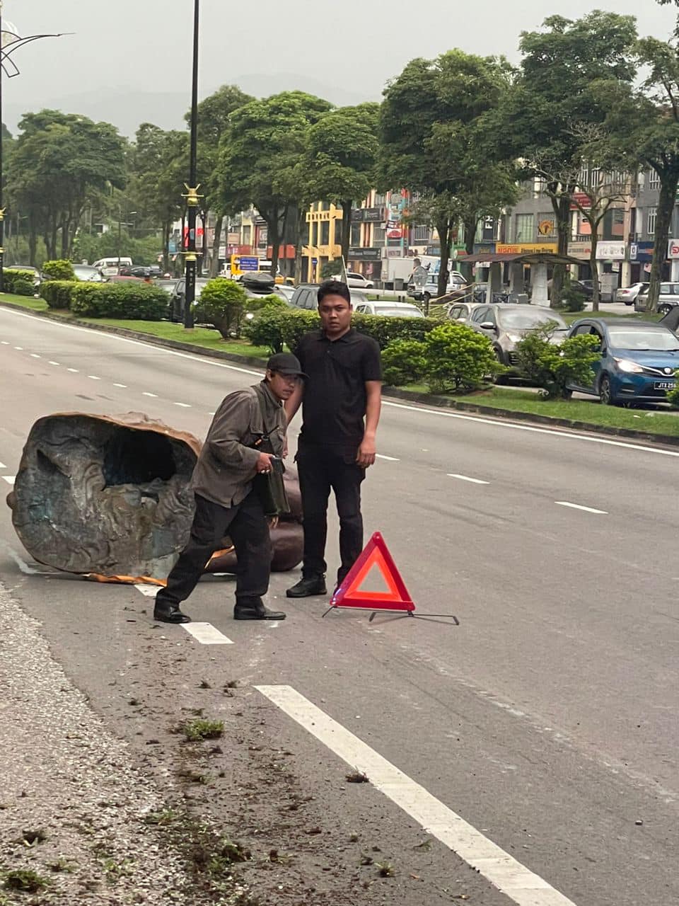 他指出,有关骏马装饰的镀铜铁,相信是用来绑着马的绳子,在途中皮带断裂,造成骏马从罗厘掉落路边,并在新山─笨珍路被发现。