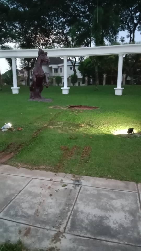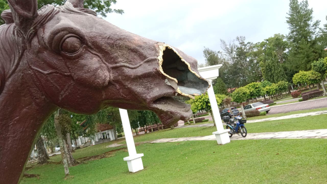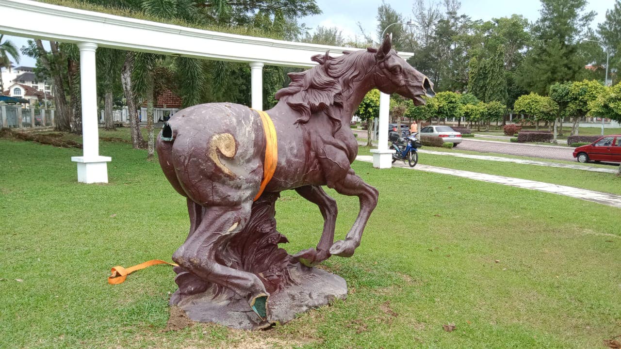 装置在富莱苑(Taman Sri Pulai Perdana) 住宅区附近的装饰马,于前日(24日)清晨约6时,被2名窃贼盗走。