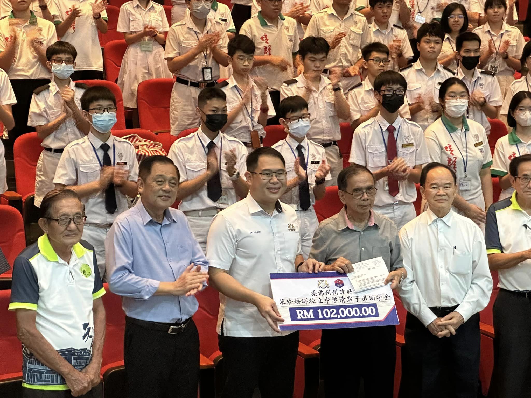 接着他又前往笨珍培群独中,将10万2000令吉拨款移交,并希望这里的102名同学获得了柔佛州政府的援助后,可以放心继续他们的学业。