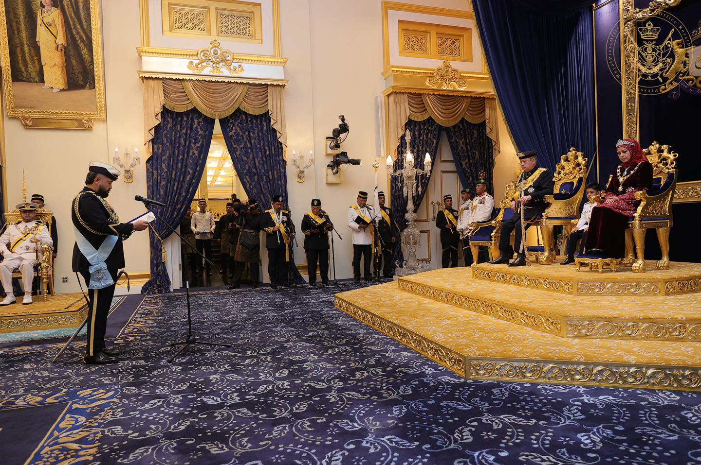 今日在大王宫礼堂举行的诞辰庆典上,陛下谕词指根据宪法,出任国家元首期间,需要下放统治州的权力给柔佛王储。