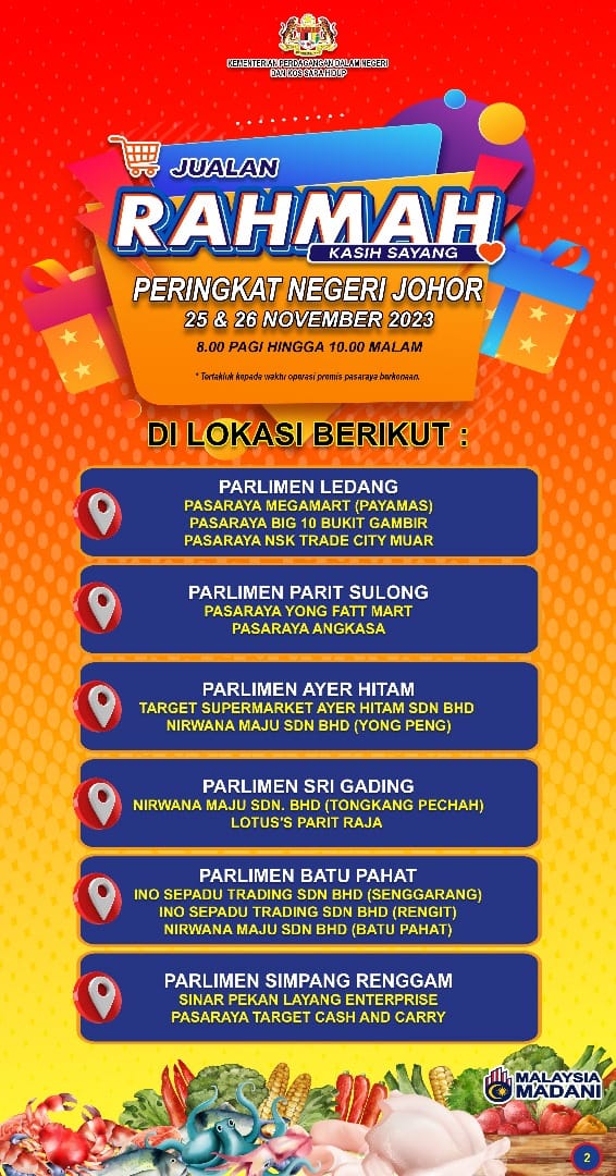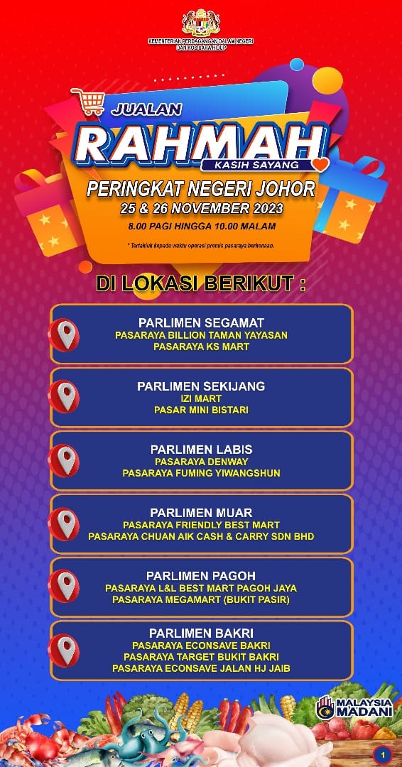 柔佛爱心促销活动(Jualan Rahmah)明天和后天(11月25日和26日),在全柔各国会选区内同步举行。