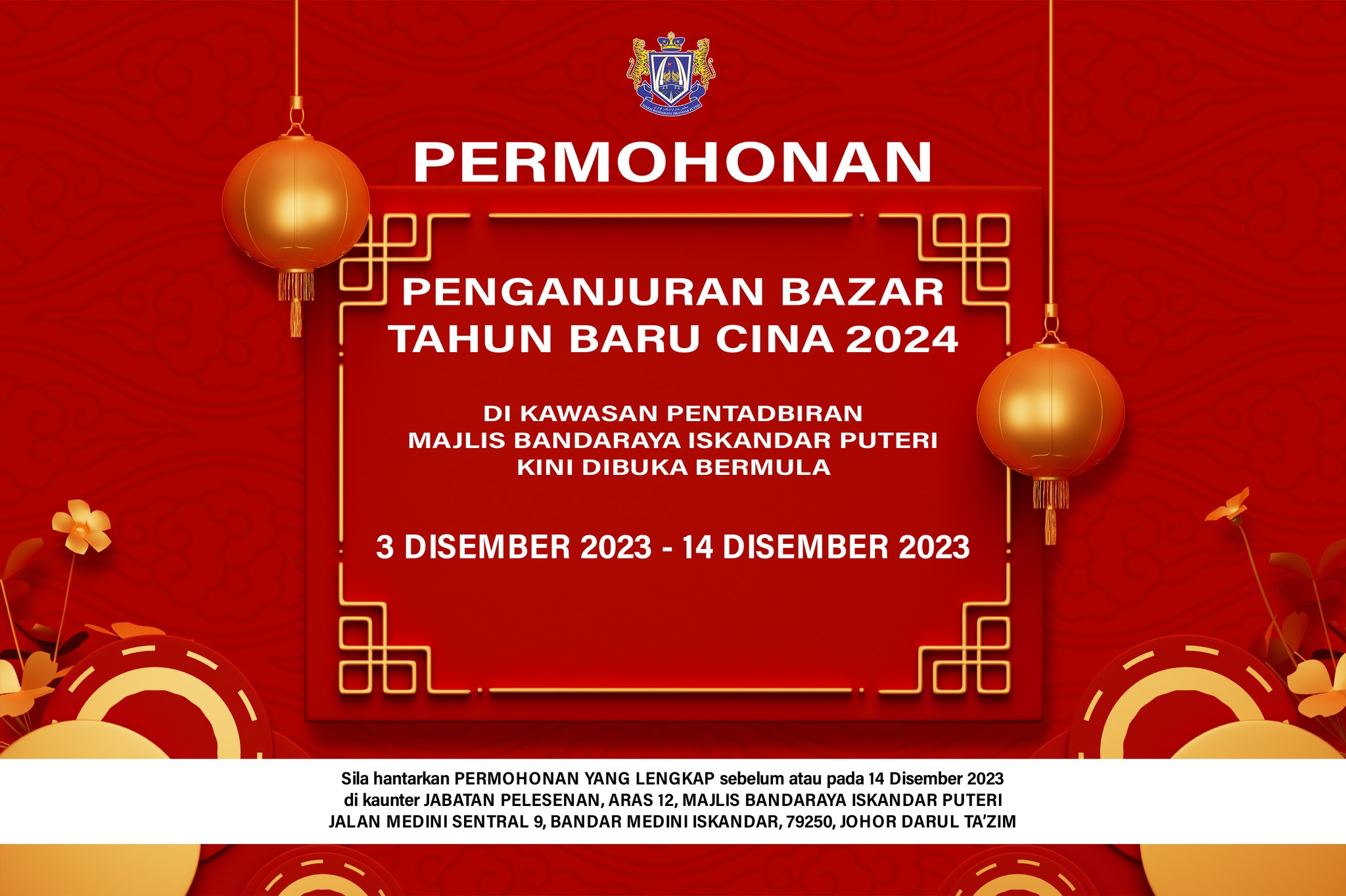 依斯干达公主城市政局今日发出通告,12月3日至14日,有意在辖区内举办华人农历新年年货城的业主,可以前往申请。