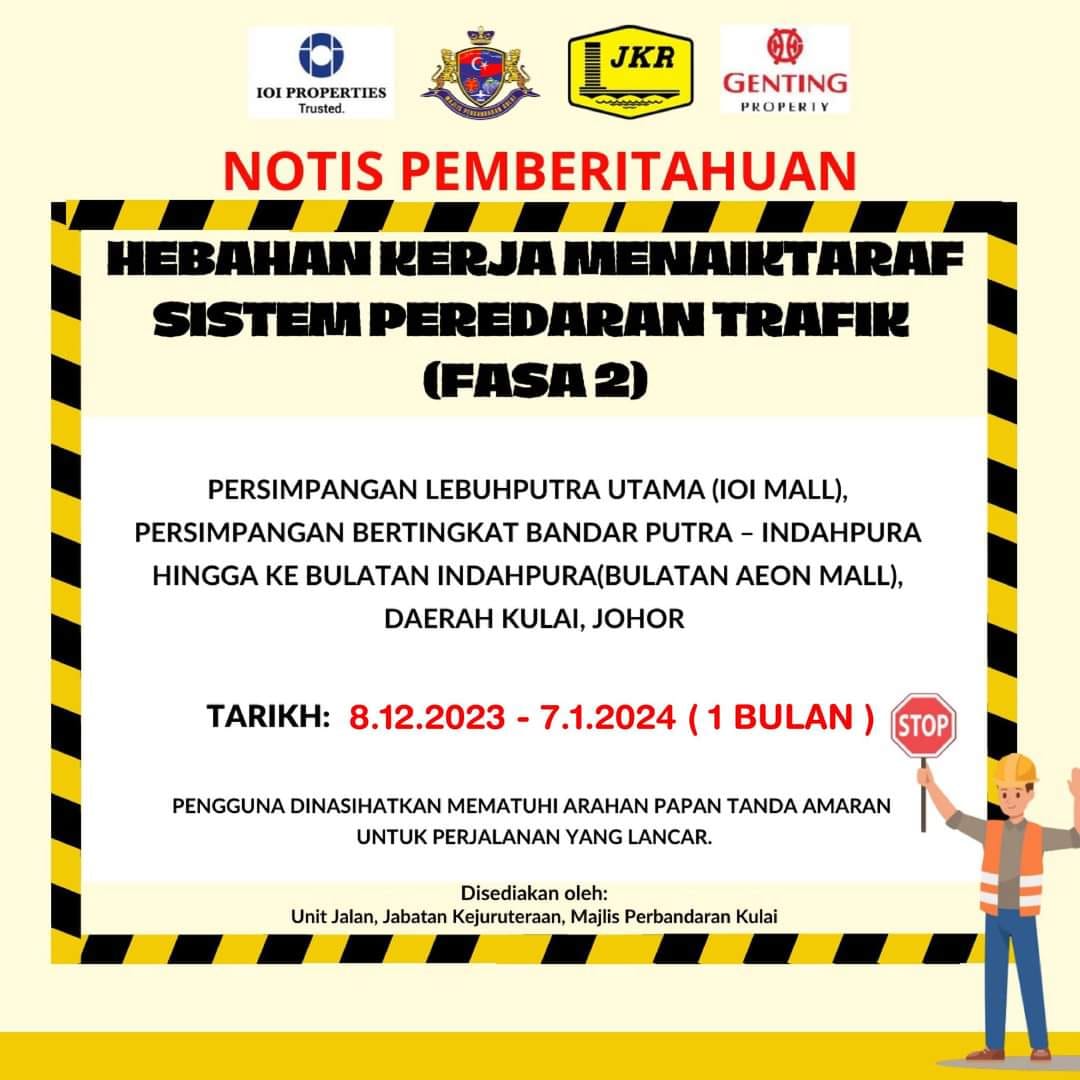 民主行动党士乃区州议员黄勃扬指出,施工日期为12月8日晚上11时开始,直至2024年1月7日。