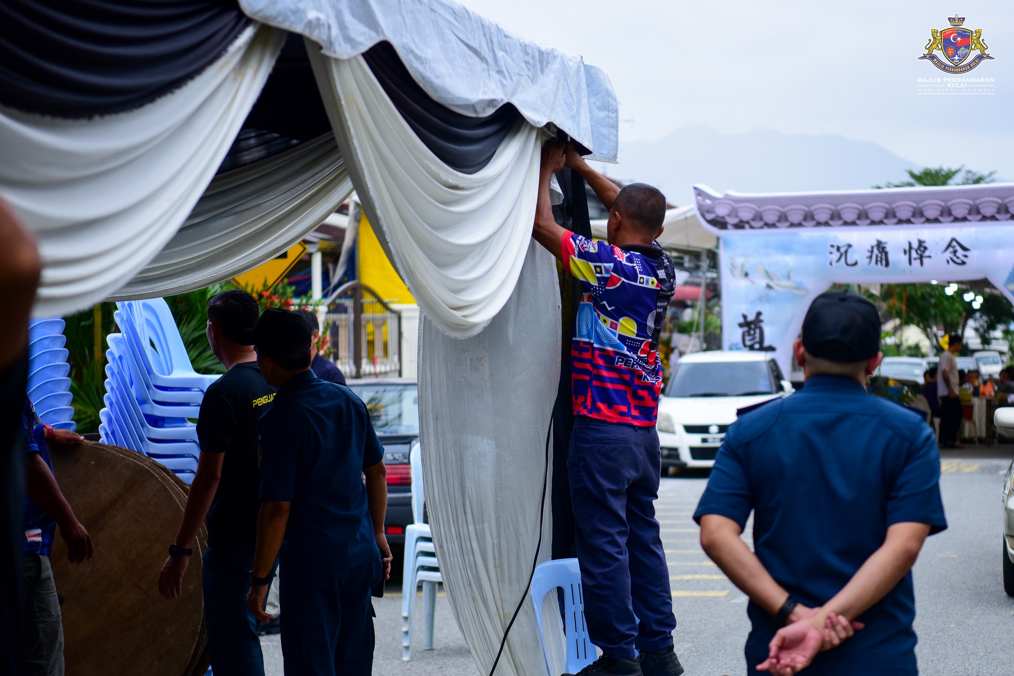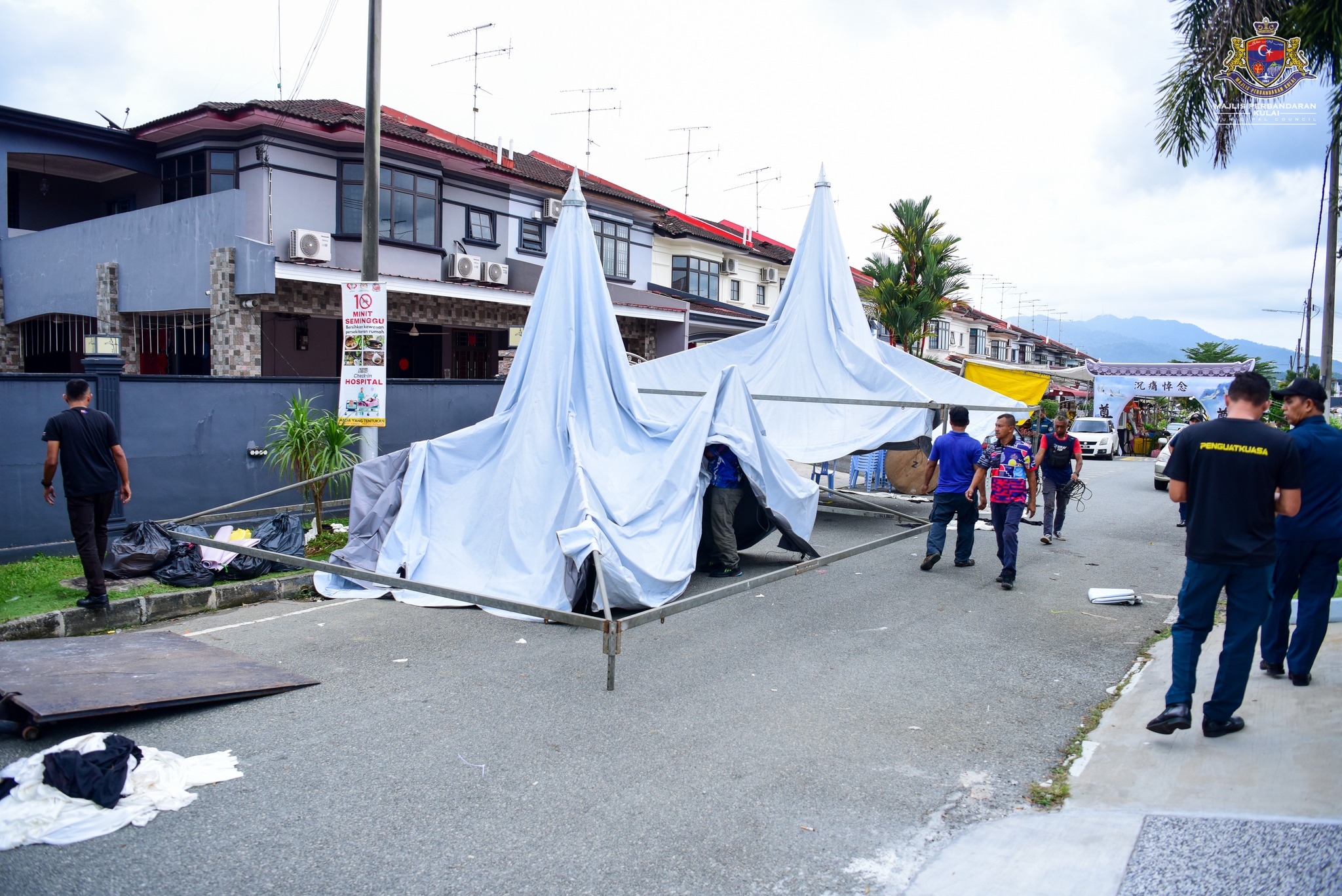 执法人员也根据 2015 年道路、沟渠和建筑物条例(古来市议会))第 46.(1)(a) 条文,针对业主在公共场所擅自搭建障碍物(帐篷)20×20,干扰交通,发出一封警告信。