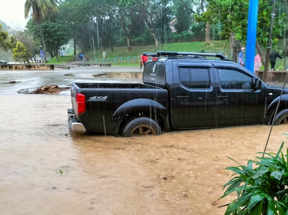 除了湖宾公园大钟楼广场,居銮其他地方也传出水患。