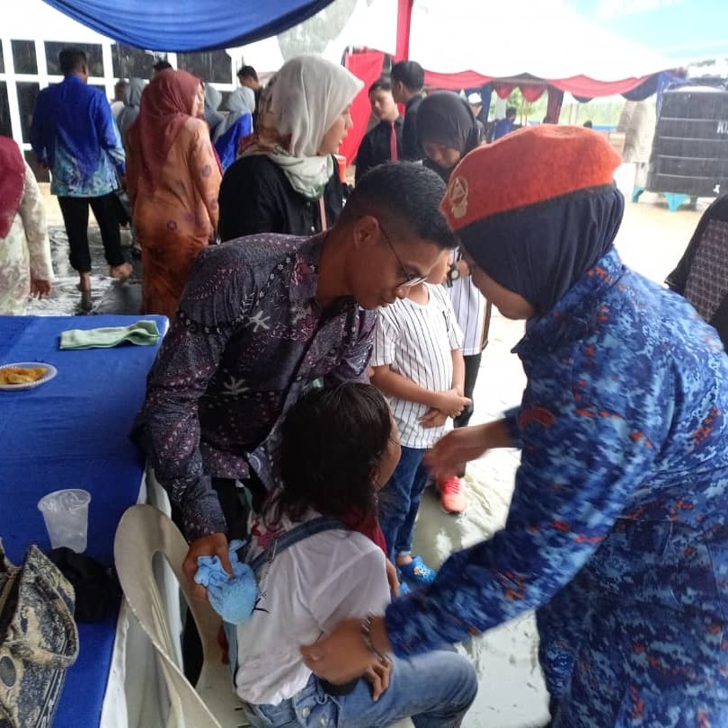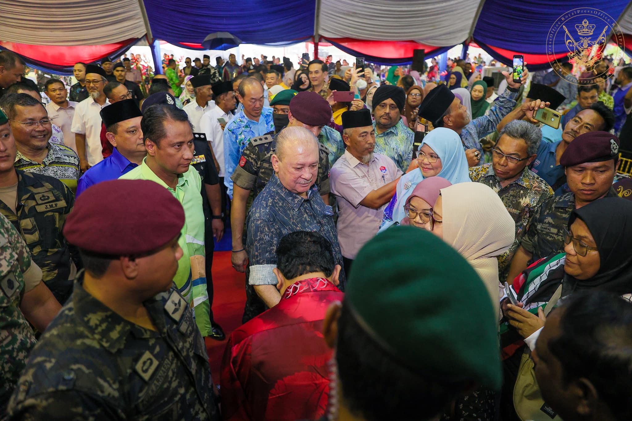 茶会在居銮湖滨公园大钟楼广场(Dataran Tasik Kluang)举行,虽然天不作美,下起大雨,仍有逾3000人与会,把握机会目睹陛下风采。